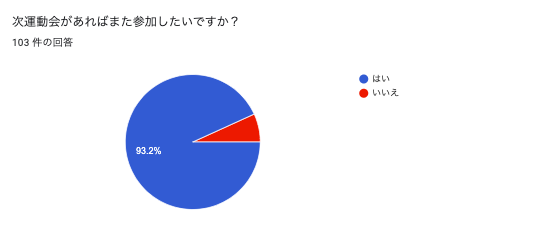 ちなみに、「次に運動会があればまた参加したいですか」という質問には、93%の方が「はい」と回答。