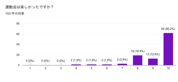 運動会全体と各種目について「楽しかったか」を10点満点で評価し、コメントも任意でいただきました。