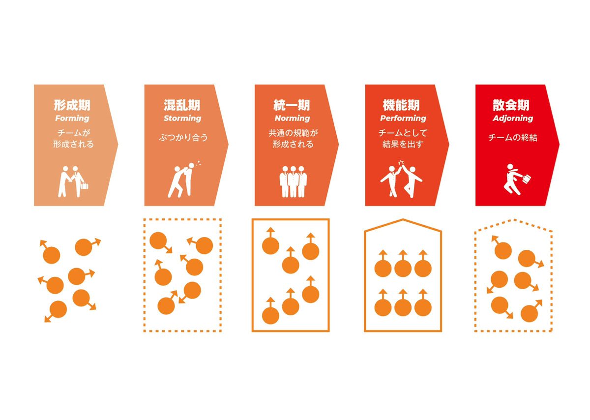 先ほどご紹介したタックマンモデルの5段階のうち、チームがどのステージに位置するかによってもチームビルディングの方法は変わってきます。