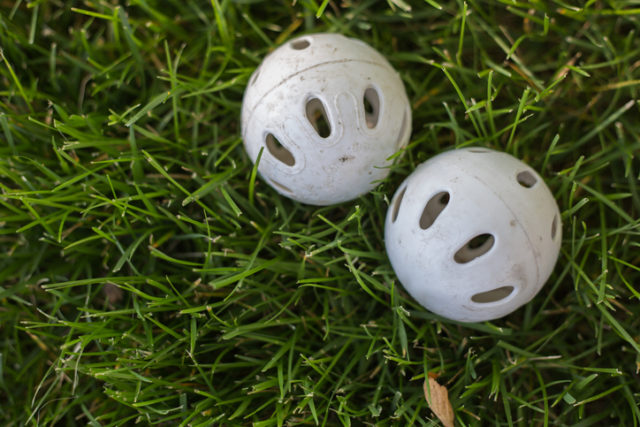 ウィッフルボールは、アメリカ生まれのニュースポーツです。特徴は、なんといってもユニークなボールの形状。プラスチック製の軽いボールには穴が開いていて、中も空洞になっています。通常の野球ボールにはできないような変化球が可能で、ボールが予想を超える動きをする面白さが魅力です。バットはプラスチック製バットであればOKで、庭など狭い空間でもプレイできます。