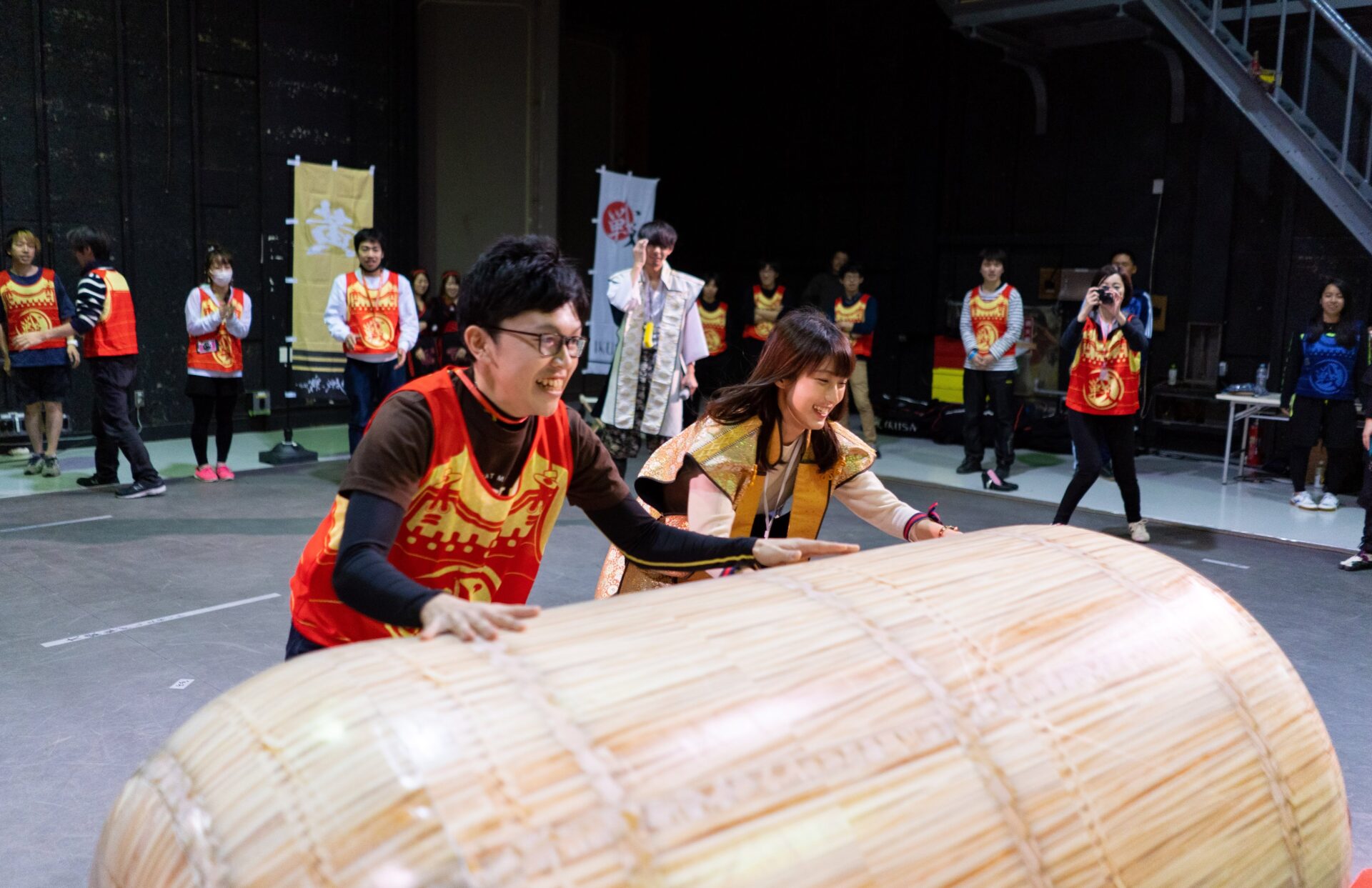 戦国武将の衣装を身にまとい、チャンバラ合戦を中心とした社内運動会を実施。会議室という小スペースでも迫力ある演出とチーム戦が可能で、戦略と協力の大切さを体感。当日は大俵送りや国盗り綱引きなどユニークな競技で大盛り上がりでした。