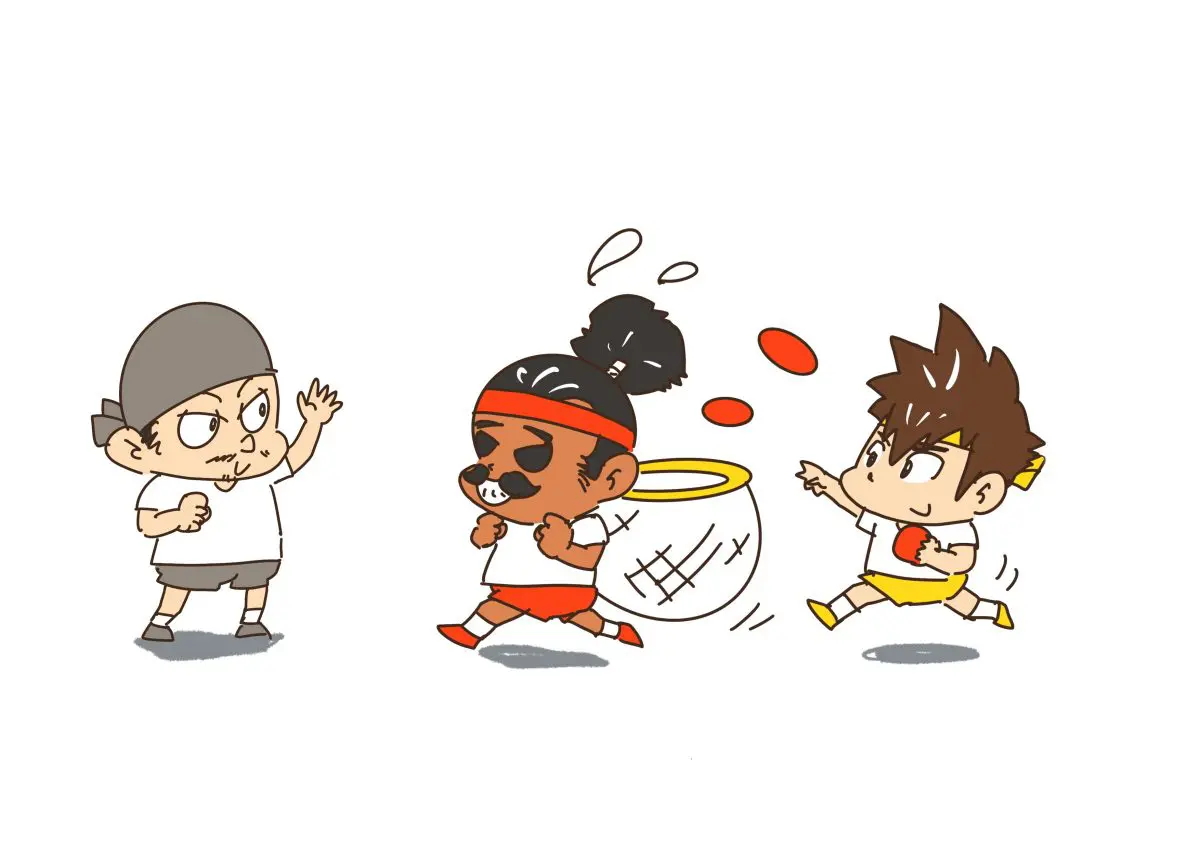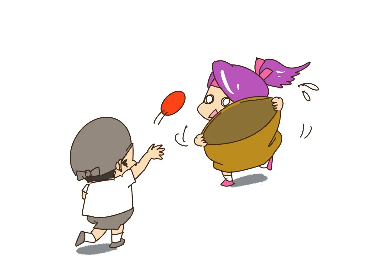 後ろ向きの状態で、頭越しに玉を投げてカゴに入れる競技。狙いを定めるのが難しく、偶然性が高いのが特徴。
