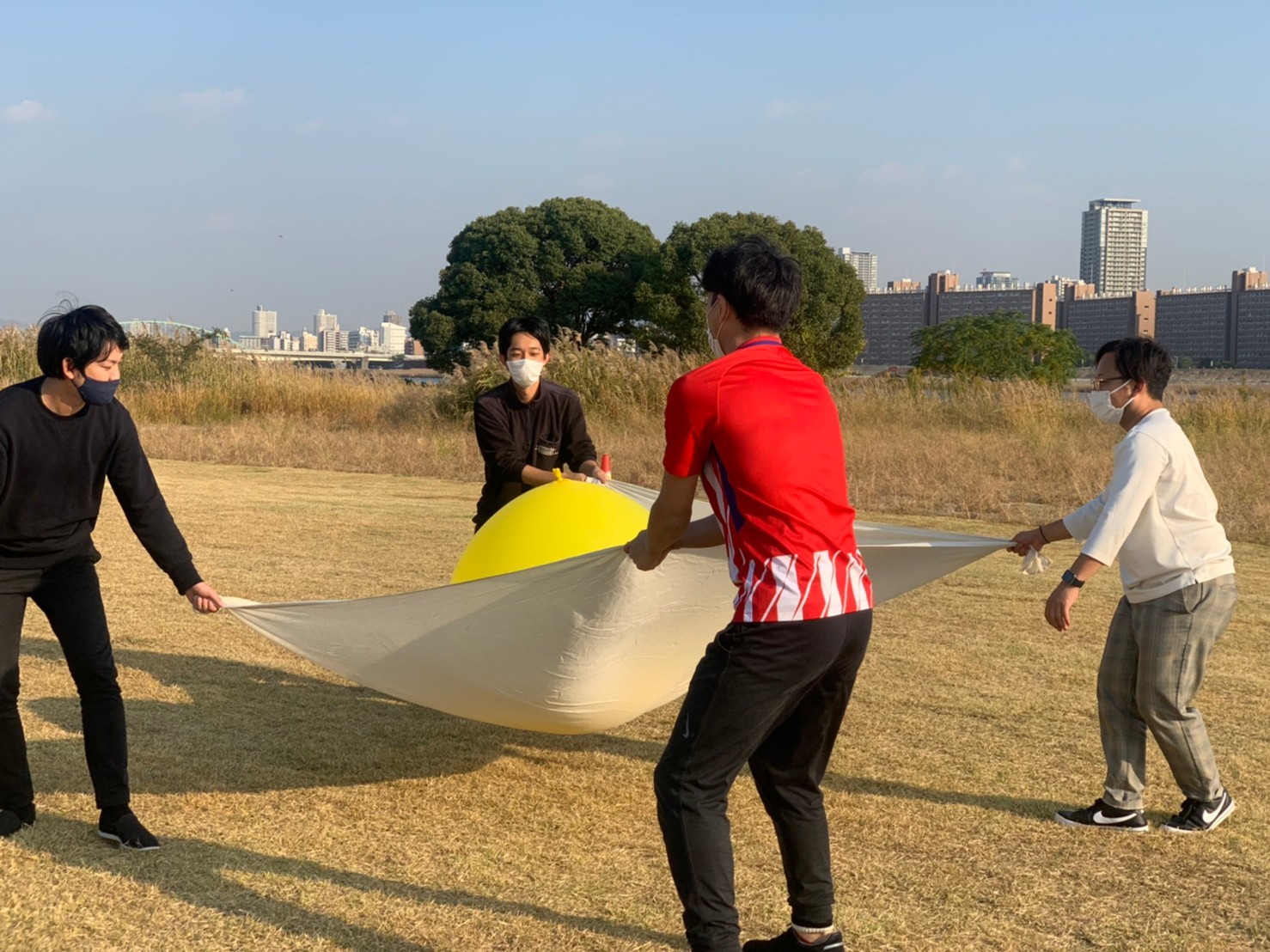 キングサイズバレーは直径2mある巨大な風船を使ってバレーを行なう競技です。