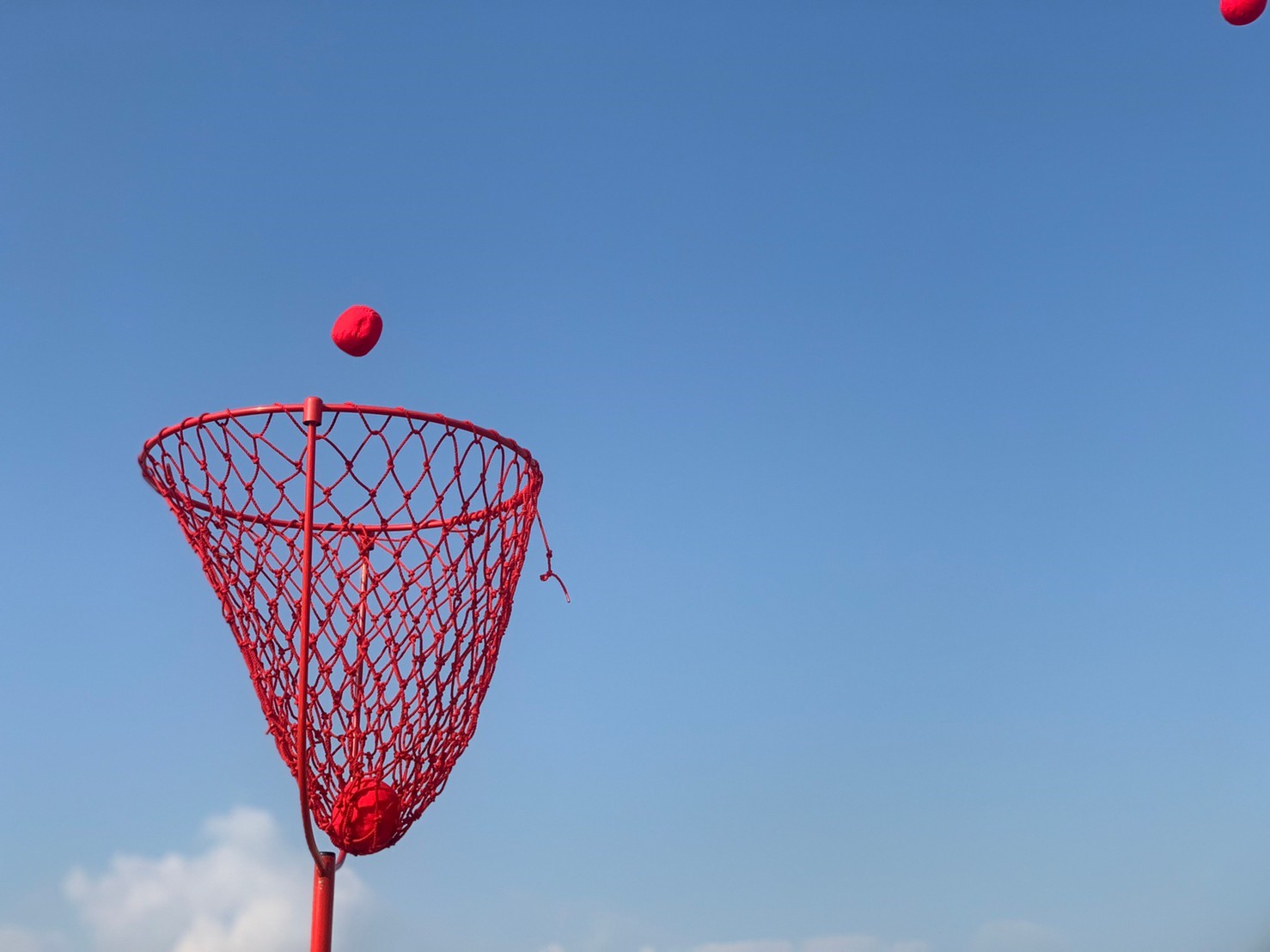 - ボールを布で受け止め、1回で相手チームのコートに返します。