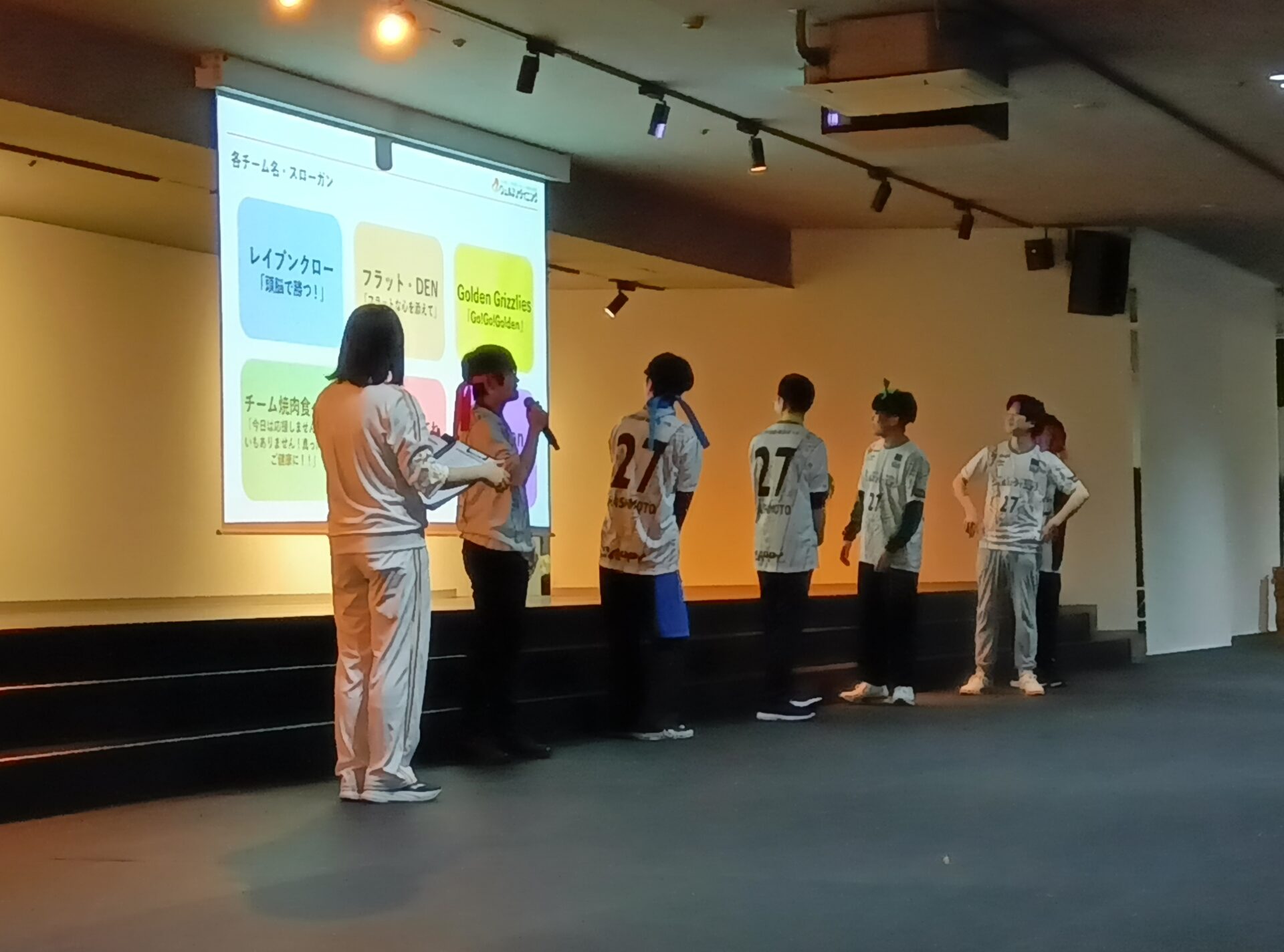 まずは開会宣言!各チームの代表6名様に選手宣誓を行っていただきチームで気合を入れました。なんと事前にチーム名とスローガンを決めてこられており、皆様競技前から一致団結している姿が見受けられました。