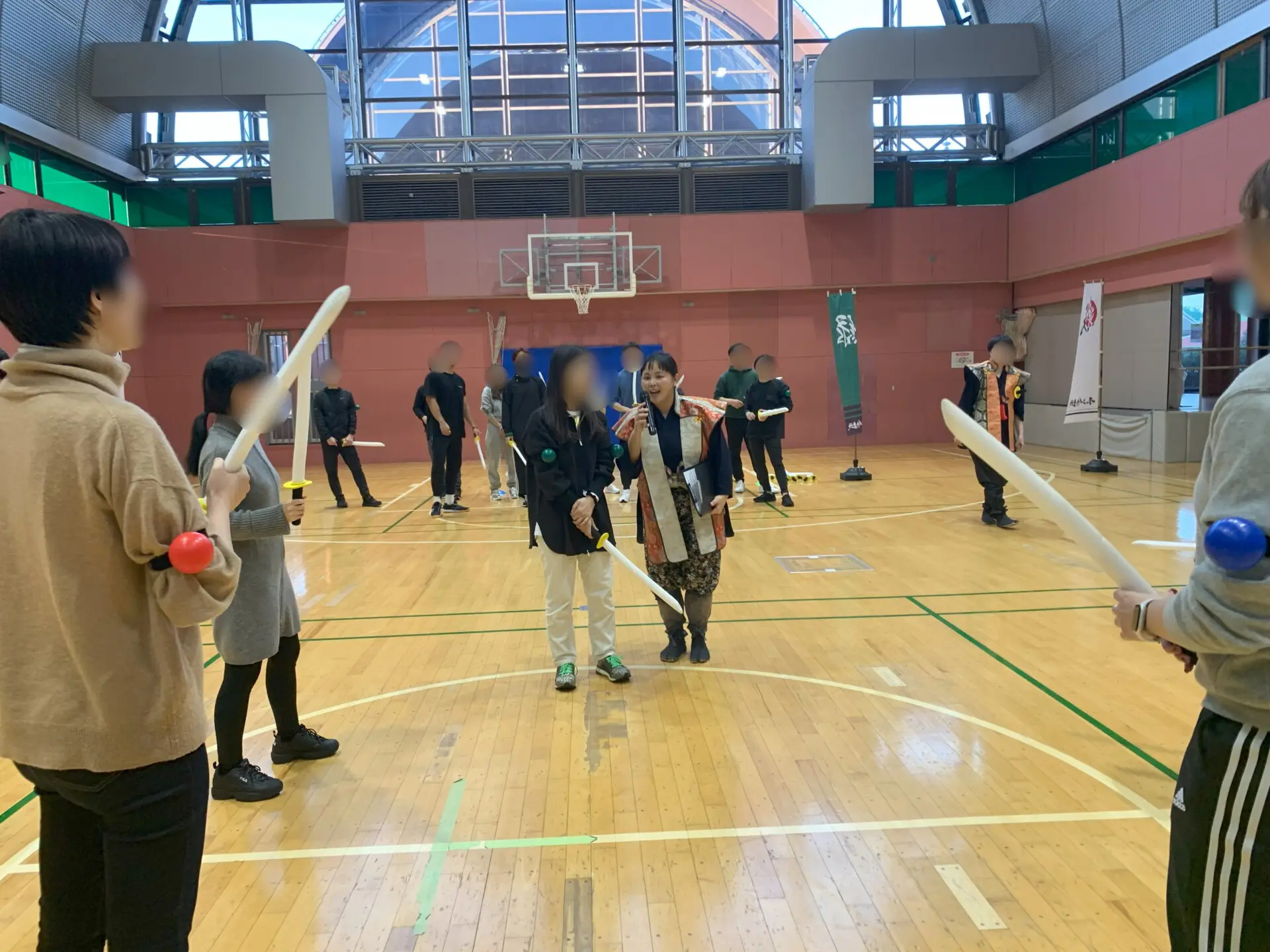 今回のチャンバラ合戦には、従業員の方々約50名が参加されました。